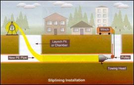 A.管内套管/内衬管滑 (拉) 入法 (slip lining) 该方法是将一条新的PE管道(管径略小于旧管道)