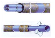 · 将内衬管两端封死,在一端向内充加热气或空气,通过高温使PE管膨胀恢复圆形并紧紧贴在旧管壁上,记忆形状被锁定,管壁完全粘在一起。