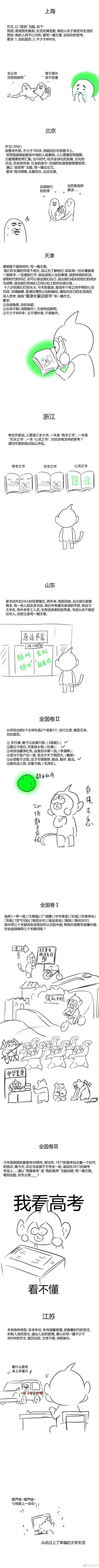 6月7日,全国高考进行时,很多人认为高考是人生最重要的考试。因为高考的重要程度,也成为全民关注的话题。每年的高考来临,首先要被讨论一番的就是高考作文。今年各地高考作文也是五花八门,很多人笑言,槽点很多呀。看完今年的高考作文(见下图),你有哪些要说的?你参加高考那年的作文题目是什么?欢迎底部分享。