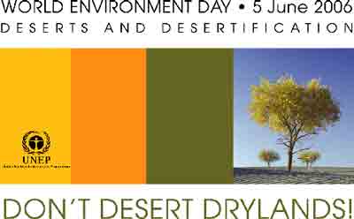 联合国大会确定2006年为“国际沙漠和荒漠化年”。为了遵守惯例,同“国际沙漠和荒漠化年”主题保持一致,UNEP选择“沙漠和荒漠化”作为今年世界环境日的主题,以突出强调这一人类所面临的紧迫环境问题。2006年2月12日,联合国环境规划署(UNEP)在阿尔及利亚首都阿尔及尔举行的新闻发布会上宣布,2006年世界环境日庆典将在这里举行。这也是世界环境日庆典首次在北非国家举行。