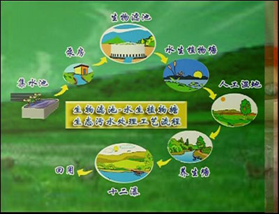 根据石家庄陆军学院的地形条件提出生态塘处理系统,首先将南侧和北侧的污水汇合,经泵提升,输送到苗圃南侧,进入南侧的兼性塘,利用藻菌共生系统对污水进行净化,COD去除率可达到60%-80%。出水经人工建造的水渠流至对侧的生态塘,生态塘和水渠中栽种水生挺水植物,出水进入养鱼塘,在进入潜流式人工湿地,最后经泵提升至高差为50米的山顶水裂沟上游。水裂沟中用毛石筑拦水坝利用跌水曝气充氧,重力流由山上流下,利用山溪、河流自净原理,发挥水中自然微生物和人工栽培的水生植物对有机物进行再次去除,达到净化的目的。处理后的污水可以作为景观用水和校区生活杂用水,实现了水资源的良性循环,缓解了校区绿化和生活用水短缺问题。