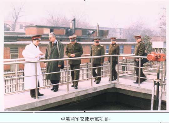 西安陆军学院位于西安市远郊,校外是农田。总污水量2000m3。过去污水直接排入农田,因此经常发生军民纠纷。该学院污水 处理工程于2002年列入总部计划,由总装备部工程设计研究所环保中心负责设计,采用先进的周期循环活性污泥法工艺(CASS法)。花园式布局,并预留了中水工程场地。2002年5月完成设计,工程于11月份进水运行。2003年1月接受了美军代表团参观,并给予了高度评价,成为西安地区首家采用CASS工艺的示范工程。