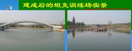 经过坦克训练场的中水资源化水体景观设计和绿化美化设计等综合环境治理,彻底消除了因装甲车辆驾驶训练带来的大量扬尘污染,昔日的坦克训练场“晴天满山土、雨天一路泥的黄土岭”,如今变成了训练功能齐全、景色宜人、绿水蓝天的新景观。坦克训练场的成功设计,使我们走出了一条“环境改造与训练设施建设并举、污染治理与资源利用结合、降尘降噪与绿化美化统一”的生态环境建设新路子,建成了我军第一个生态型坦克训练场,保障了教学工作的顺利进行,为我院向全军培养合格的军事指挥技术人才打下了坚实的基础。
