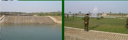 党中央、国务院为我们描绘了建设和谐社会的美好前景,中央军委也多次发出“部队的环保工作要走在社会的前列”的号召,而装工院以污染治理为核心的污水资源化和生态型人文景观建设就是体现了“以人为本,循环使用,持续发展”的建设理念,落实循环经济和可持续发展观的具体体现。通过新建的高效污水处理系统,每年可节约用水36万吨,实现了污染变资源的重大突破。另外,经过营区生态环境建设,扬尘消失了,噪音控制了,污水成宝了。以往,每逢“两会”,人民代表就把学院的污染问题列入提案,由于周围居民受扬尘污染不时地阻挠上课,经常停课,给教学训练造成损失。现在,军政、军民之间关系重新变得融洽,彼此成为和谐相处的好邻居。