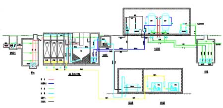 总体规划是在主营区西南角建设一座日出里能力3000 m3/d的污水处理及中水回用站,其中1000 m3/d的中水用于营区及坦克训练场的水面景观和绿化美化,其余2000m3/d达标排放。