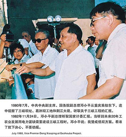 1980年7月,邓小平从重庆乘船东下,视察了三峡坝址,葛洲坝工地和荆江大桥。