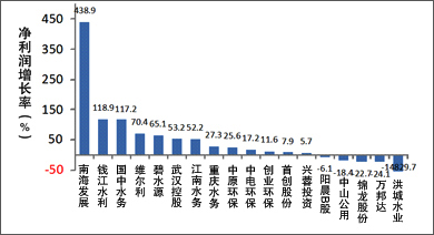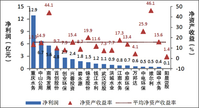 2010年,水务上市公司平均净资产收益率为15.78%,共有11家公司净资产收益率超过10%,其中是维尔利和南海发展最高,分别为46.08%和44.06%。净利润最高的公司是重庆水务和中山公用,分别为12.91亿元和6.67亿元。