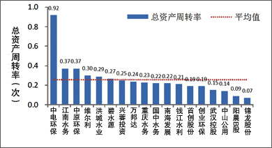 总资产周转率反映企业的资产利用效率。以自来水和污水处理为主的上市公司由于其行业特点,总资产周转率普遍较低,均未超过0.4次/年。中电环保总资产周转率远高于其他水务公司,其2010年尚未上市时总资产规模较小,营业收入则高达2.8亿元(至今年一季度,则中电环保总资产周转率已降至0.05次/年)。