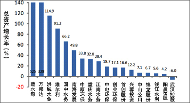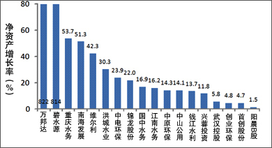 2010年成功上市的碧水源、万邦达、重庆水务,以及定向增发的洪城水业、国中水务,企业资产规模均有大幅增长。武汉控股是唯一总资产有小幅下降的公司,其余公司总资产、净资产全部实现了不同程度的增长。