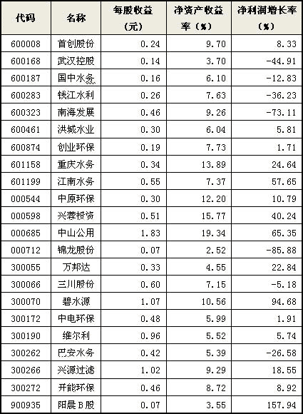净利润增长速度最快的是阳晨B股、碧水源和中山公用,分别同比增长157.94%、94.68%和65.35%。锦龙股份、南海发展较上年同期净利润降幅最大,分别下降了85.88%和73.11%。
