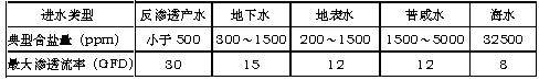 渗透流率――渗透流率也是表示反渗透膜元件产水量的重要指标。指单位膜面积上透过液的流率,通常用加仑每平方英尺每天(GFD)表示。过高的渗透流率将导致垂直于膜表面的水流速加快,加剧膜污染。